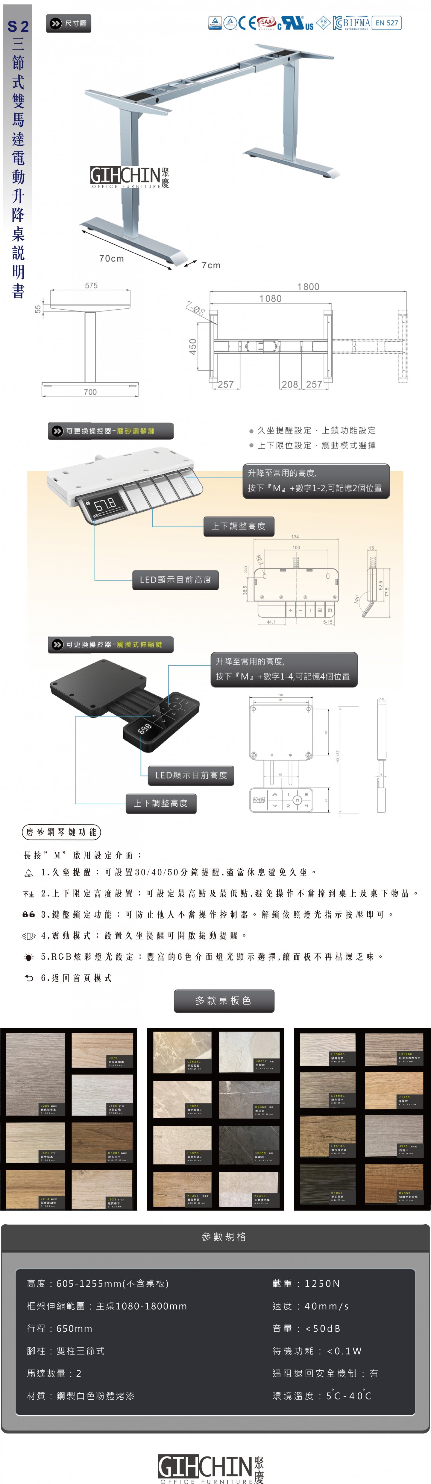 電動三節式雙馬達升降桌S-2