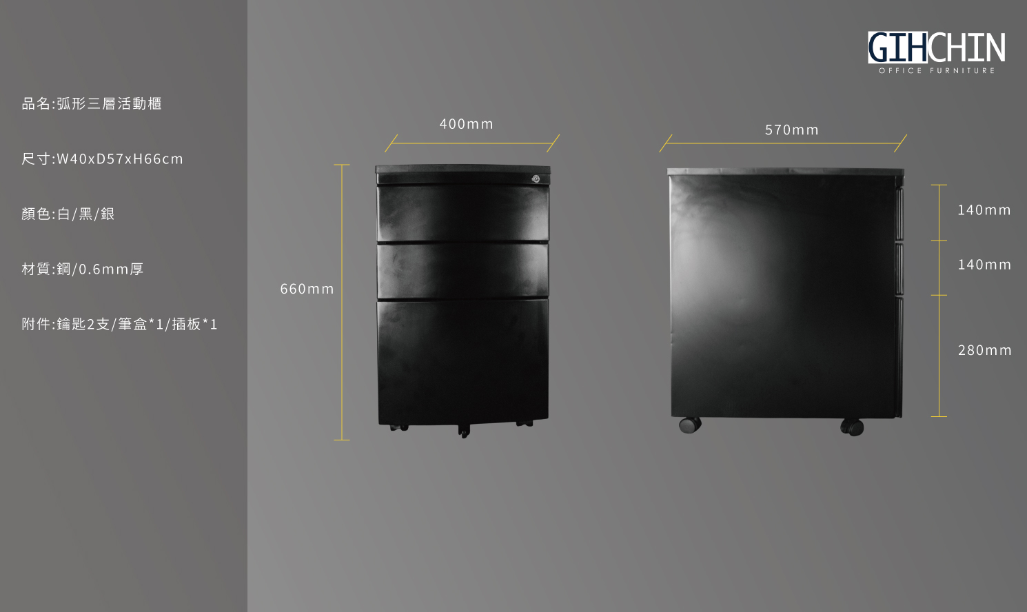 OA-E01 弧形三層活動櫃